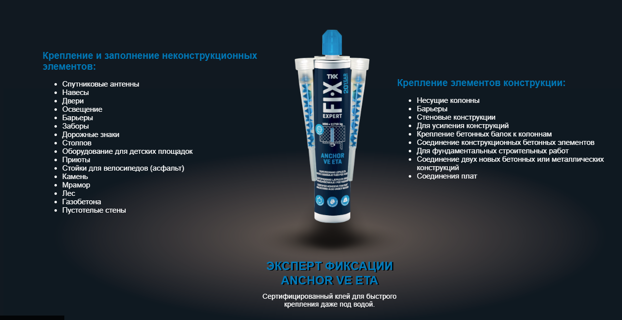 Adeziv Fix Expert ANCHOR VE 300 ml - adeziv bicomponent pentru o ancorare chimică rapidă sub sarcini mari. Poate fi utilizat și pe substraturi umede, scufundate sau atacate chimic.
