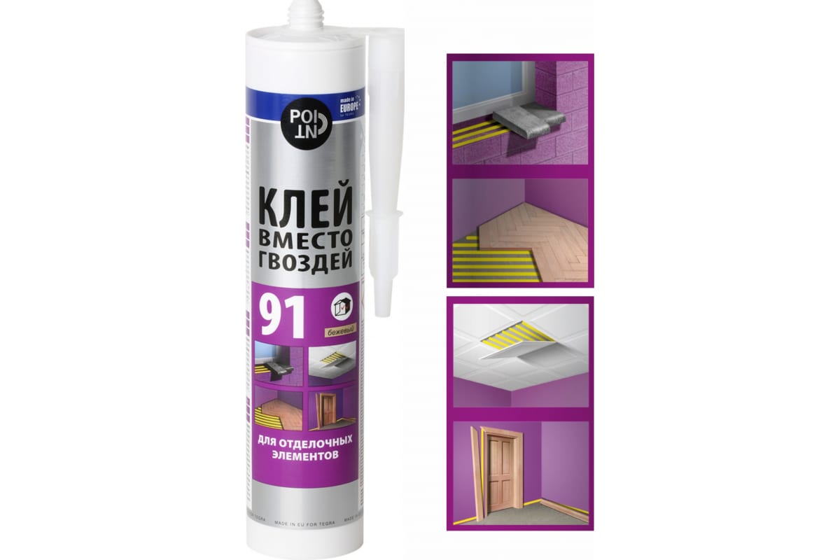 Adeziv ermetic Point 91 280ml pe bază de cauciuc pentru lucrări de instalare și finisare. Pentru lipirea plintei, panourilor, lemnului, pervazurilor de ferestre, PVC, ceramicii, sticlei, metalului pe beton, cărămizi, tencuială și gips. Timp de lucru: 10-15 minute. Temperatura de aplicare: +15° C până la +30° C Temperatura de depozitare: +5° C până la +25° C Rezistența după întărirea completă: -20° C până la +80° C Ambalaj: 280 ml - Compoziție: Cauciucuri SBS, rășini de hidrocarburi, solvenți organici, materiale de umplutură minerale. - Tip de cusătură: elastic - Greutate uscată: 73 ± 3 %. - Densitate: 1,25 ± 0,05 g/cm3 - Temperatura de lucru: 15° C - 30° C - Timp de întărire: 10-15 min. (această valoare poate varia în funcție de condițiile de mediu, cum ar fi: temperatura, umiditatea și tipul de suprafață). - Rezistența la temperatură: -20°C până la +60°C - Timp de vindecare completă: 72 ore Solvenți buni: benzină de extracție, acetonă Inflamabilitate: inflamabil - Consum: 300 - 500 g/m2 ***Cautați un magazin de materiale de construcții pentru a cumpara Adeziv ermetic Point 91 280ml bej? Magazin online Super Stefan livreaza Adeziv ermetic Point 91 280ml bej. Prețurile noastre pentru Adeziv ermetic Point 91 280ml bej sunt cele mai mici in Chișinau!
