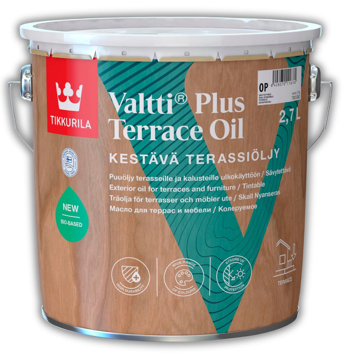 Tikkurila Valtti Plus Terrace Oil este un ulei premium destinat protecției lemnului la exterior. Formează un strat extrem de rezistent care protejează eficient lemnul împotriva razelor UV și a intemperiilor.