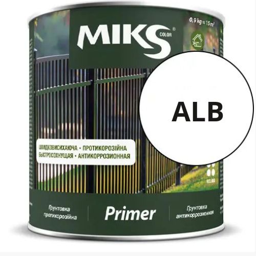 Grund anticoroziune ”MIKS COLOR” - amorsă anticorozivă cu uscare rapidă pentru amorsarea suprafețelor metalice și din lemn înainte de vopsirea cu materiale alchidice, acrilice și alte materiale de bază. Caracteristici: - Protecție eficientă împotriva ruginii; - Consum economic; - Acțiunea sarurilor și a uleiurilor; - Rezistă la schimbări de temperature de la minus 450 la 600 °C; - Uscare rapidă; - Nu conține compuși de metale grele deosebit de periculoase.