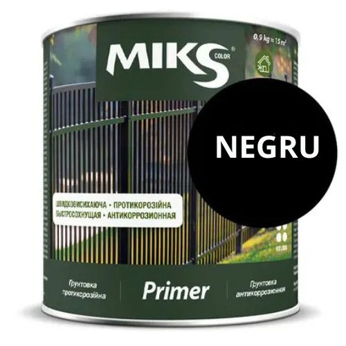 Grund anticoroziune ”MIKS COLOR” - amorsă anticorozivă cu uscare rapidă pentru amorsarea suprafețelor metalice și din lemn înainte de vopsirea cu materiale alchidice, acrilice și alte materiale de bază. Caracteristici: - Protecție eficientă împotriva ruginii; - Consum economic; - Acțiunea sarurilor și a uleiurilor; - Rezistă la schimbări de temperature de la minus 450 la 600 °C; - Uscare rapidă; - Nu conține compuși de metale grele deosebit de periculoase.