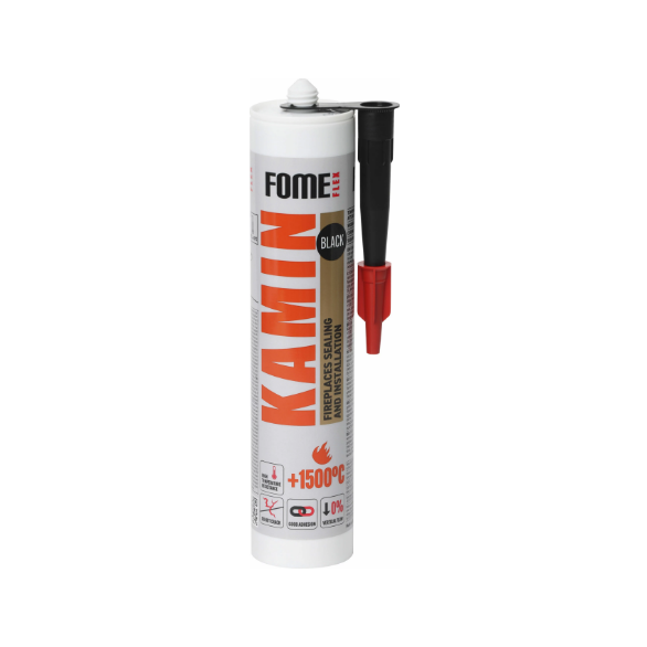 Ermetic FOME FLEX KAMIN 1500°C negru 300ml - etanșant monocomponent de înaltă calitate, pe bază de silicat, rezistent la temperaturi ridicate (până la + 1500°C). Nu crapă în rosturile fixe. Temperatura de aplicare: +5°C - +40°C.Temperatura de depozitare: +5°C - +30°C.