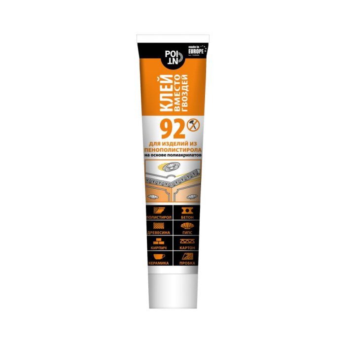 Adeziv ermetic Point 92 80ml este un adeziv apos monocomponent pe bază de dispersie acrilică de stiren, conceput pentru lipirea elementelor de stiropor pe substraturi poroase (care absorb apă), cum ar fi betonul, tencuiala, cimentul, cărămizile, plăcile aglomerate. Adezivul formează o îmbinare albă după întărire. Adezivul este conceput pentru a lipi: - chesoane - rozete și alte elemente decorative din polistiren - Materiale izolatoare din stiropor - elemente ceramice pe pereți Cum se utilizează Curățați temeinic, ștergeți praful și uscați suprafețele care urmează să fie lipite. Aplicați adezivul pe una dintre suprafețele care urmează să fie lipite, fie în puncte mici, fie în benzi. Datorită timpului scurt de uscare, se aplică pe suprafața care urmează să fie lipită în termen de 15 minute. Așezați adezivul pe substrat și apăsați ferm. Rezistența deplină este atinsă după 48 de ore. Date tehnice Compoziție: dispersie acrilică, materiale de umplutură minerale Culoare: alb Conținutul de solide 75 ± 3 % Densitate: 1,45 ± 0,05 g/cm3 Temperatura de aplicare: minim +15°C Cleaner: apă înainte de întărire Timp de uscare: 10 până la 15 minute Timp de vindecare completă: aprox: 48 de ore Consum (în funcție de planeitatea suprafeței): aprox. 200-400 g/m2 Inflamabilitate: nu este inflamabil Rezistență la îngheț: -20°C Rezistența la temperatură după întărire: -20°C până la +60°C