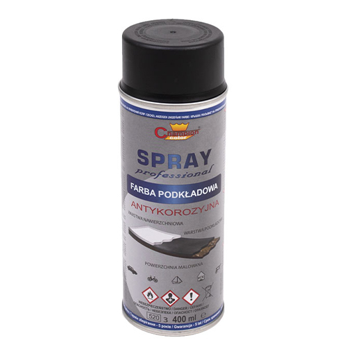 Spray grund professional Champion pentru amorsarea diferitelor suprafețe. Aderență excelentă la substrat, proprietăți anticorozive în raport cu oțelul. Finisajul mat asigură o aderență perfectă a vopselelor și emailurilor de finisare. Recomandat pentru utilizarea pe mașini noi, instalații, structuri industriale și de construcții, stâlpi de linii electrice, lămpi de iluminat public, garduri, balustrade, rezervoare, tablă etc. sau la renovarea acestora, precum și pentru repararea straturilor de vopsea deteriorate. Suprafața care urmează să fie vopsită trebuie să fie uscată, fără murdărie, grăsime, rugină etc.