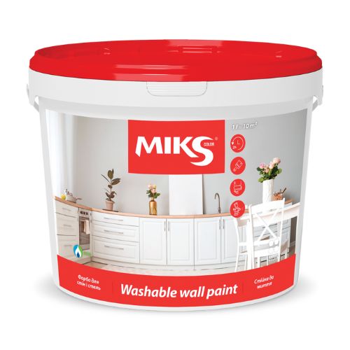 Краска интерьерная для стен и потолков "MIKS COLOR" стойкая к мытью белая, 7кг