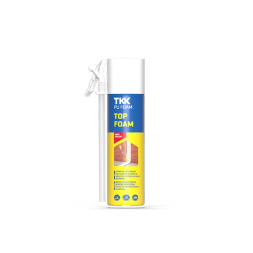 Spuma poliuretanică manuală TKK Top Foam este destinată pentru montarea rapidă a ușilor și ferestrelor, precum și pentru umplerea golurilor de construcție și izolație. Aceasta se întărește în contact cu umiditatea din aer și se extinde în volum de 2-3 ori după aplicare. Se lipește perfect de majoritatea materialelor de construcție, cum ar fi lemnul, betonul, cărămida, metalul și aluminiul. După întărirea completă, asigură o conexiune solidă și o izolație excelentă. După finalizarea lucrărilor, este necesar să se protejeze spuma de lumina ultravioletă.